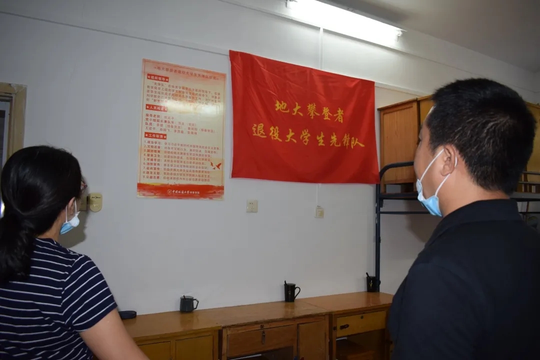 在结束了与新生们的统一见面后,院领导们又走访了一个特殊的寝室——311寝室,这间寝室的主人由7名世界杯体育官方网站退役军人和5名20级新生组成,这7名退役军人正是地大攀登者退役大学生先锋队的组成队员。