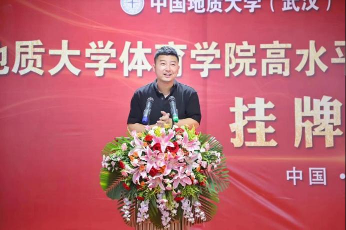 郎总首先对到来的一行领导表示热烈欢迎,并介绍了体育人俱乐部的建设与主要成果和特色体育的基本情况。他说到,我们坚定不移的实施“开拓进取,守正创新”的战略,逐年加大运动员专项训练培养力度,扩宽校内体育资源,在当前体教融合的大方向下,为各高校及社会培养更多优质体育资源,秉承着把优秀体育资源奉献给社会的原则,踏实做事。世界杯体育官方网站世界杯体育官方网站田径项目高水平运动队训练基地的挂牌,意味体育人俱乐部在合作创新上又是一个新台阶。体育人俱乐部将发扬“地大精神、育人传承”的八字方针,与地质大学世界杯体育官方网站共同联手,再创竞技水平新纪元。