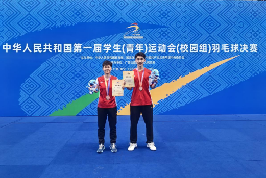 第一届学生(青年)运动会(校园组)羽毛球赛于2023年10月18-29日在广西大学举行。经过激烈的角逐,世界杯学子2020级世界杯体育官方网站司徒瑾/2021级公共管理学院罗传俊获得混双第三名!值得庆贺的是他们均为地大高水平羽毛球队在校生,从国家一级运动员晋级为国家运动健将级,取得历史性突破!充分体现了世界杯学子艰苦朴素求真务实的精神!