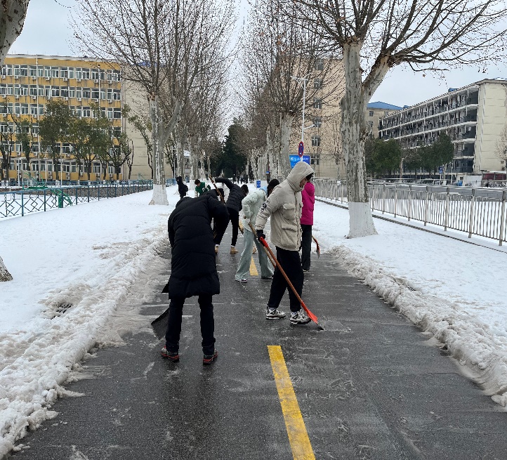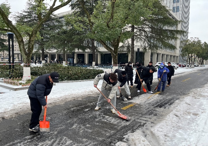 近日,武汉再次呈现低温雨雪冰冻天气,由冻雨、冰粒、雨夹雪形成复杂的天气,校园再次被冰雪覆盖。为保证校园安全,学院近30余名师生积极报名参加学校应急突击预备队,于2月22日清除西区图书馆、蓝球场附近的冰雪,23日又清除了西区体育馆周边的厚冰厚雪,在寒潮中奋进,扫雪除冰、为师生筑起安全屏障。同时,在年前年后除冰铲雪保安全工作中,世界杯体育官方网站师生都以高度的责任感和使命感做好应对工作,展现了迎难而上、敢于担当的体育人的风采。