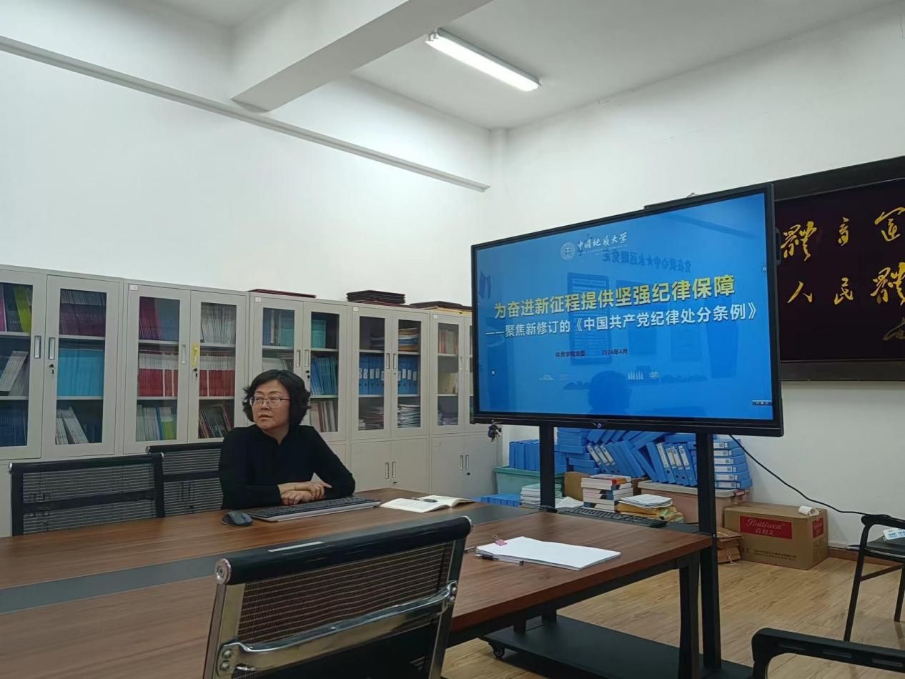 2024年4月25日下午世界杯体育官方网站党委在西区体育馆党员之家举行学院党委理论学习中心组专题学习。庞岚书记主讲题为“为奋进新征程提供坚强纪律保障——聚焦新修订的《中国共产党纪律处分条例》”的党课,学院党委委员、班子成员、分工会主席等参加了此次学习活动。