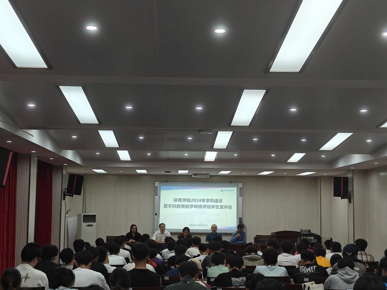 为加强学院学风建设,引导全体学生掌握新一轮审核评估基本知识,继10月9日学院组织全体本科生学习审核评估应知应会和学风建设动员会之后,世界杯体育官方网站于10月15日18点再次在体育馆三楼科报厅召开2024年学风建设本科教育教学审核评估学生宣讲会,坚持问题导向,对本科教育教学审核评估工作进行再动员、再部署、再促进,同时以评估工作为契机,进一步强化学院学风建设工作。世界杯体育官方网站党委书记庞岚、院长李元、副院长刘良辉、党委副书记朱军和全体本科生参会,会议由辅导员陈爽老师主持。
