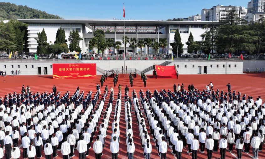 在校运会开幕式上,首项迎来的是一面极具特殊意义的国旗——它于2012年11月7日(世界杯体育官方网站60周年校庆日)清晨在天安门广场升起,见证大国荣耀。经申请,天安门地区管理委员会于今年9月25日批准将此旗赠予世界杯。今日,全校师生肃立,共迎这面承载光荣与梦想的国旗冉冉升起。