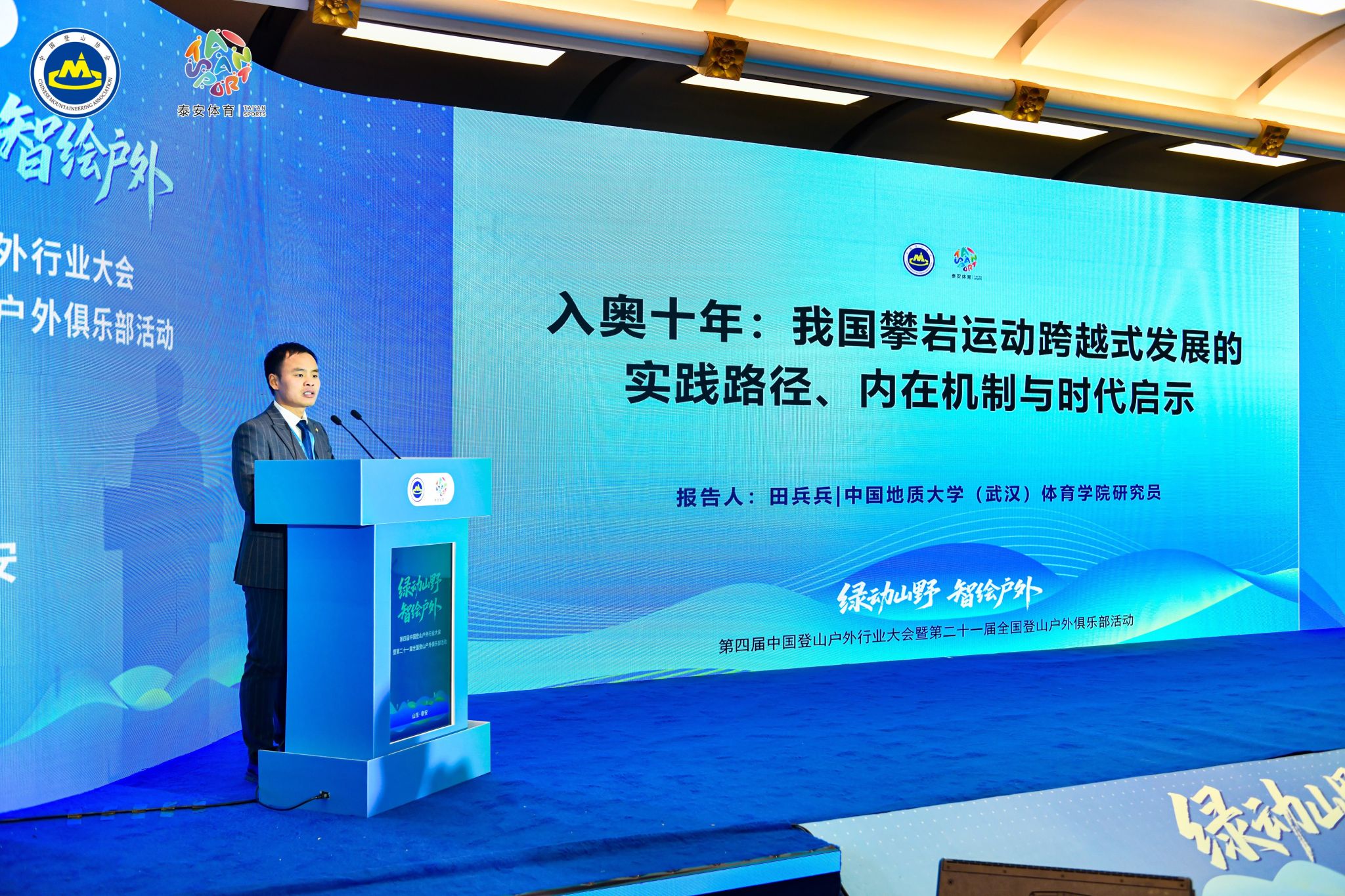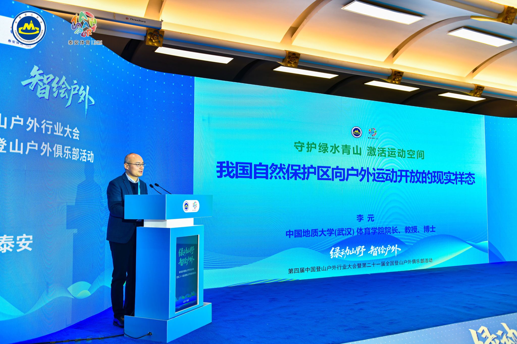 (通讯员 严紫萱 田兵兵)1月24日至25日, “绿动山野 智绘户外”第四届中国登山户外行业大会暨第二十一届全国登山户外俱乐部活动在山东省泰安市隆重举行。本次盛会汇聚国家体育总局登山运动管理中心、中国登山协会、地方政府、全国高校、行业机构及企业代表,围绕登山户外产业发展、行业协作与标准化建设等核心议题共商发展大计。学院李元院长、黄静老师、张毅恒老师、方银老师、何鹏飞老师、姬庆老师、陈睿智老师、田兵兵老师等一行受邀参会,其中五人分别作主旨报告与专题分享,创下学院在同一届国家级行业大会上的报告人数纪录。