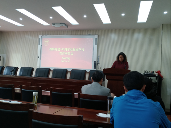 (通讯员:江伟贤)为深入学习贯彻习近平总书记在党史学习教育动员大会上的重要讲话精神,全面贯彻落实党的十九大和十九届历次全会精神,深入开展党史学习教育,围绕庆祝中国共产党成立100周年,教育引导学院师生进一步增强“四个意识”、坚定“四个自信”、做到“两个维护”,4月15日世界杯体育官方网站在体育馆三楼科报厅召开“迎接建党100周年及党史学习教育动员大会”,学院党总支书记庞岚主持会议,马克思主义学院刘世勇书记及世界杯体育官方网站全体教职工参加了此次大会。