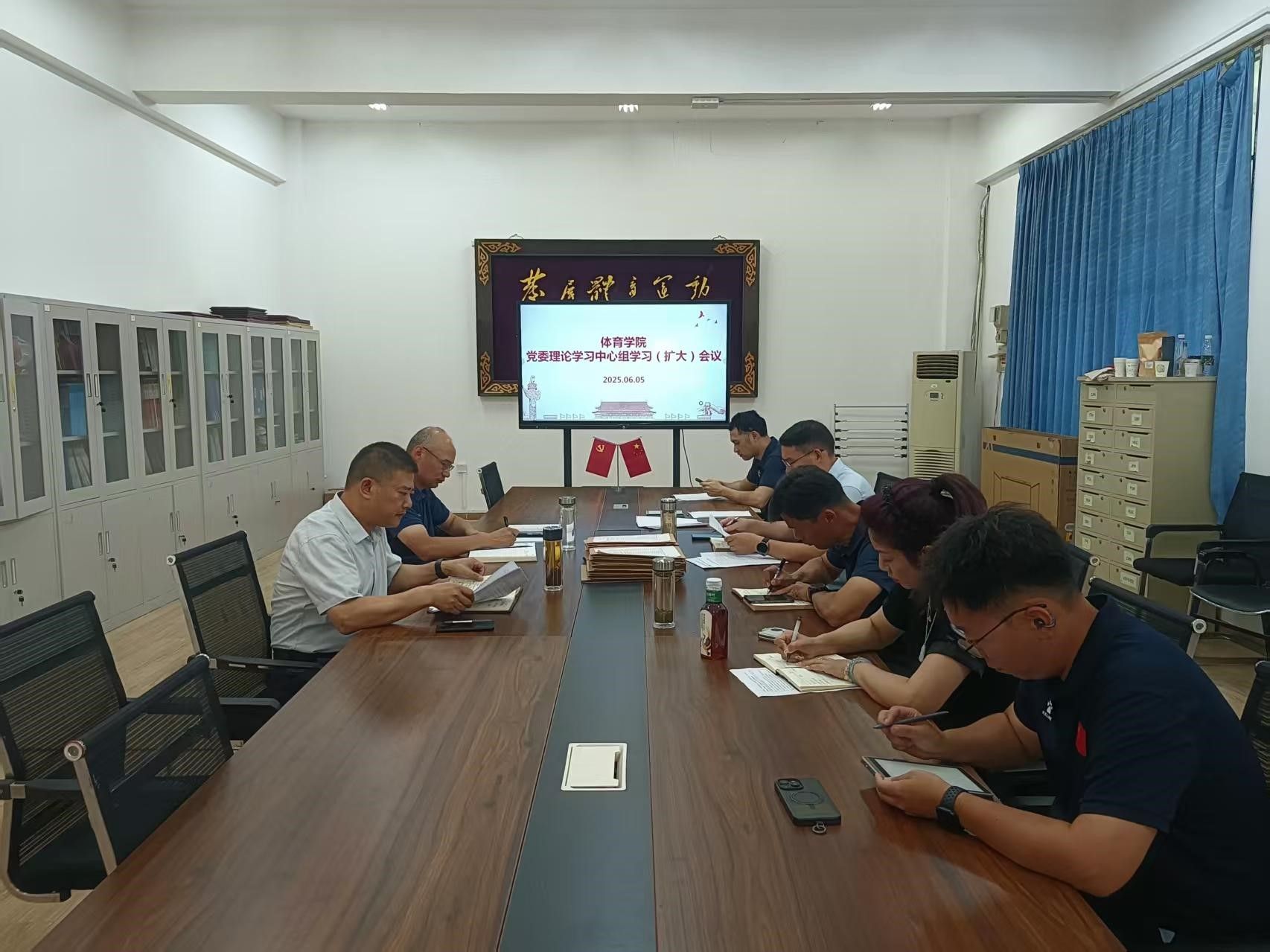 2025 年 6 月 5 日下午 2:30,世界杯体育官方网站党委理论学习中心组学习(扩大)会议在体育馆党员之家举行。会议由何建新书记主持,学院党委委员参会,教师党支部书记列席会议。