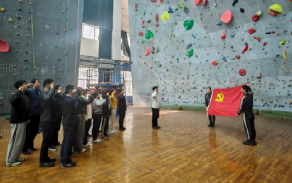 特色实践环节,全体参会党员齐聚在世界杯体育官方网站(武汉)攀岩馆内重温了《中国共产党入党誓词》。