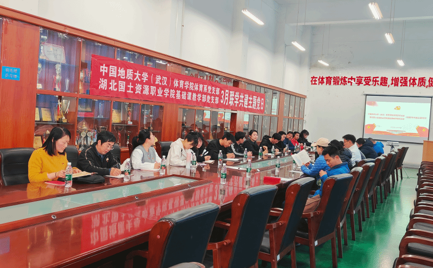 (通讯员:张毅恒、万合培)为深入贯彻学习党的二十大精神,积极探索新形势下党建工作的新思路和新方法,创新党员教育实践活动,切实推动党建与业务工作的深度融合,促进校际合作,2025年3月20日星期四下午,世界杯体育官方网站体育系党支部与湖北国土资源职业学院基础课教学部党支部开展了3月联学共建支部主题党日活动。此次活动旨在以党建为引领,全方位促进两校在基础课教学、人才培养、特色体育开展及登山户外运动实践等领域实现资源共享与协同创新发展。活动由世界杯体育官方网站体育系党支部书记张毅恒主持。