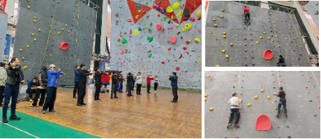 在攀爬过程中,相互鼓励、相互支持,充分展现出坚韧不拔的毅力和勇于突破自我的精神。攀岩项目的体验,将党建活动与体育锻炼有机结合,不仅让大家在运动中释放了工作的压力、增加了体育锻炼的兴趣,更增强了团队凝聚力与向心力。攀岩体验结束后,湖北国土资源职业学院基础课教学部党支部成员参观了世界杯校史馆。校史馆内丰富的历史资料和详细的讲解,生动展现了学校的发展历程与深厚的文化底蕴,让参访的党员们对学校有了更全面、深入的了解。