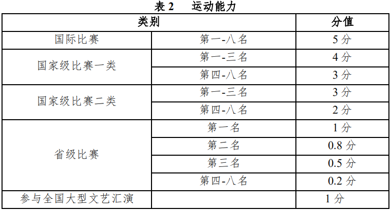 (三)获得运动健将、一级、二级运动员证书者,可分别计 5 分、3 分、1分。