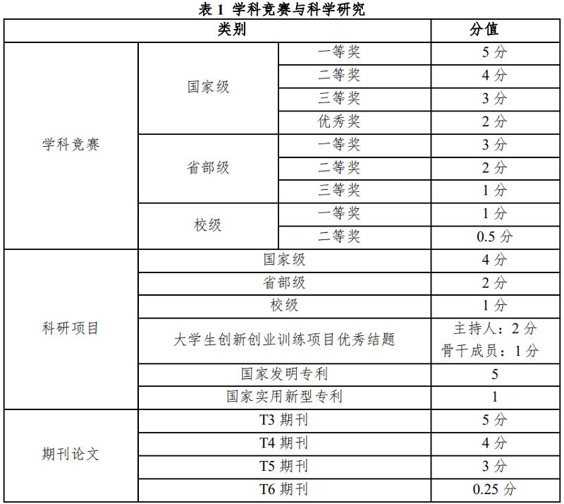 (三)大学生创新创业训练项目优秀结题加分仅限主持人和骨干成员;国家发明专利和国家实用新型专利加分仅限第一发明人;论文加分以实际刊物为依据,用稿通知不予加分。期刊的等级以学校最新认定的学术期刊目录为准,各类公开刊物必须是中国期刊网所能检索到的刊物。论文作者限第一作者和第二作者,第二作者按 1/4 计算。