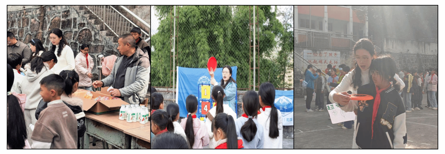 捐赠仪式后,团队成员发挥专业特长,为孩子们设计并实施了一堂以“团队协作”为思政切入点的飞盘特色体育课。