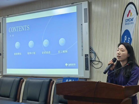随后,海亮集团曾旭经理、熊凰总监等人就公司背景、企业文化、岗位需求及培养模式等方面为同学们进行了详细宣讲和介绍,并与同学们进行了现场交流。