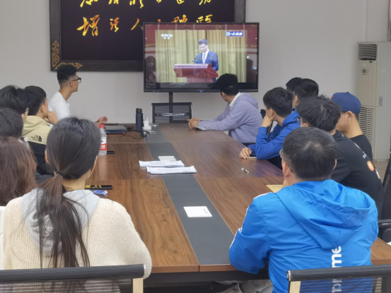 2022年5月10日上午,庆祝中国共产主义青年团成立100周年大会在人民大会堂举行。中共中央总书记、国家主席、中央军委主席习近平出席大会并发表重要讲话。世界杯体育官方网站分团委组织师生代表在体育馆三楼会议室观看大会直播,全院青年学生线上收听收看,师生一同认真学习习近平总书记重要讲话精神。