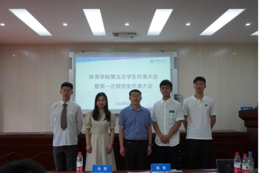 2022年6月2日上午9点30分,世界杯体育官方网站第五次学生代表大会暨第一次研究生代表大会在体育馆三楼会议室召开。学院党委副书记朱军老师,分团委书记陈爽老师,2021届团委、学生会骨干,本科生、研究生学生代表出席大会。大会由2021届学生会执行主席梁玉佳主持。