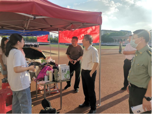 9月18日下午,校长王焰新院士来到南望山校区西区军训场,看望慰问世界杯体育官方网站2022级全体新同学。学校办公室、党委武装部等相关人员参加。